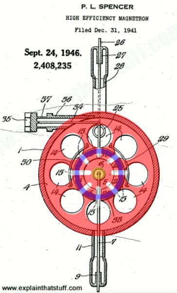 Figure 1: One of the drawings of the high-energy magnetron developed in the 1940s by Percy Spencer, who went on to perfect the microwave oven while working at Raytheon. (Source: explainthatstuff.com.)