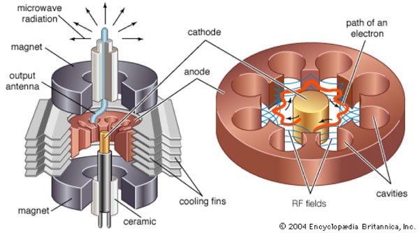 Figure 3: Typical elements of a magnetron.  "magnetron: typical elements". Art. Encyclopædia Britannica Online. Web. 02 Apr. 2015. (Source: http://www.britannica.com/EBchecked/media/137/Typical-elements-of-a-magnetron)