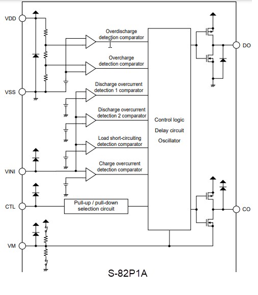 - Release voltage of discharge overcurrent status - discharge overcurrent release voltage (VRIOV) = VDD × 0.8V (typical)