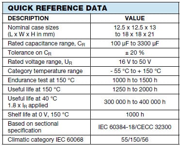Vishay 160 CLA系列鋁電容器Vishay BC Components 160 CLA系列鋁電容器為極化鋁電解電容器,具有自我修復、低阻抗和高溫回流焊接等特性。Vishay BC Components 160 CLA系列鋁電容器具有充放電保護,並且無電流峰值限制。此款電容器的電容量範圍為100-3300µF,額定電壓為16-50V,工作溫度範圍為-55ºC-+150ºC,符合AEC-Q200規範。160 CLA系列電容器另有附帶底板的SMD型號可供選擇,這款產品可進行無鉛(Pb)迴焊。 |