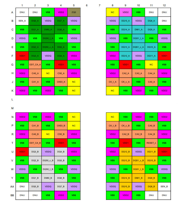 單晶片封裝 (SDP) 提供16 Mb x 16 DQ x 8 Bank x 1通道,密度為2 Gb(2,147,483,648位元)。雙晶片封裝 (DDP) 提供16 Mb x 16 DQ x 8 Bank x 2通道,密度為4 Gb(4,294,967,296位元)。